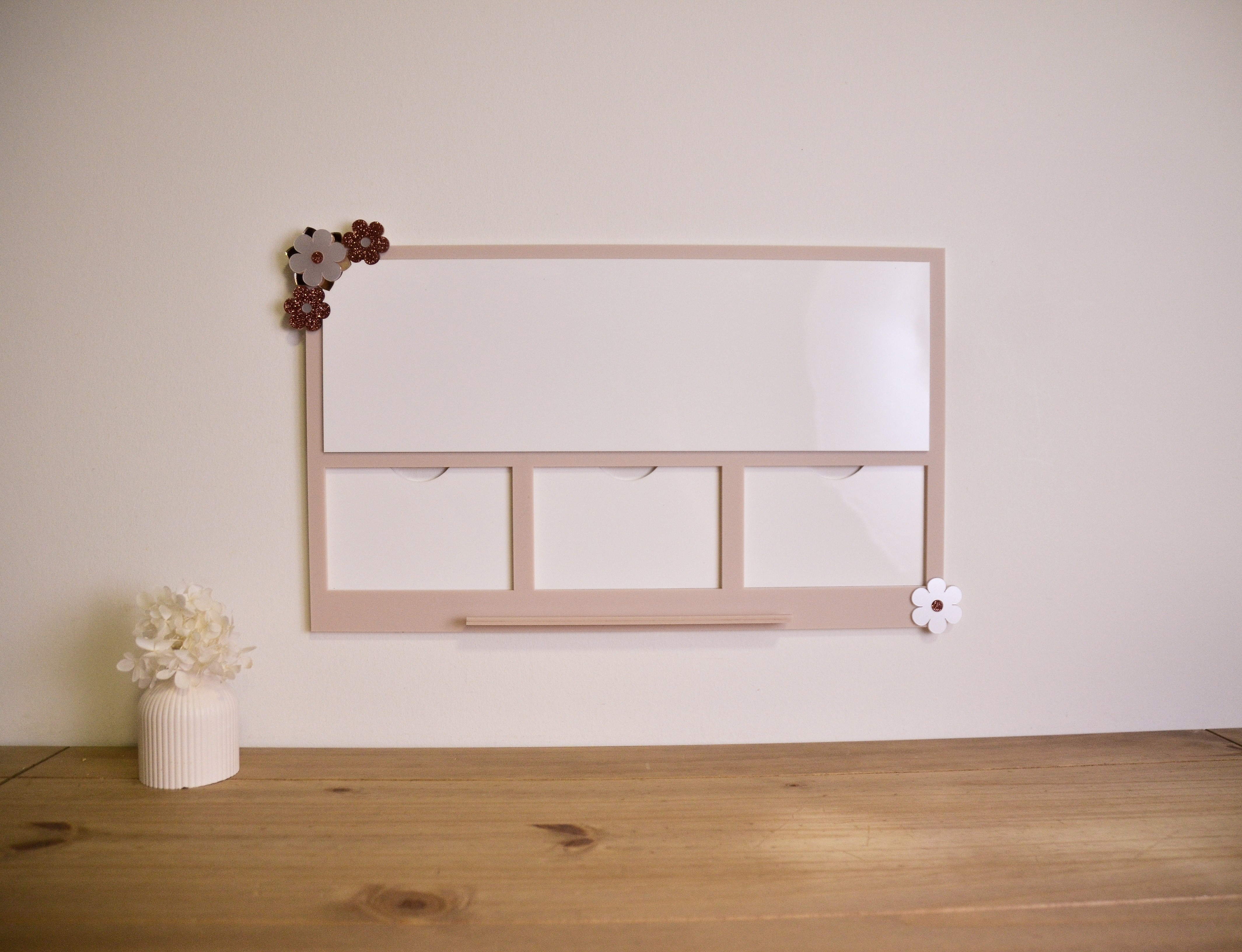 Ce tableau mémo mural allie l’utile à l’agréable avec ses tons nude et rose poudré tout en délicatesse.