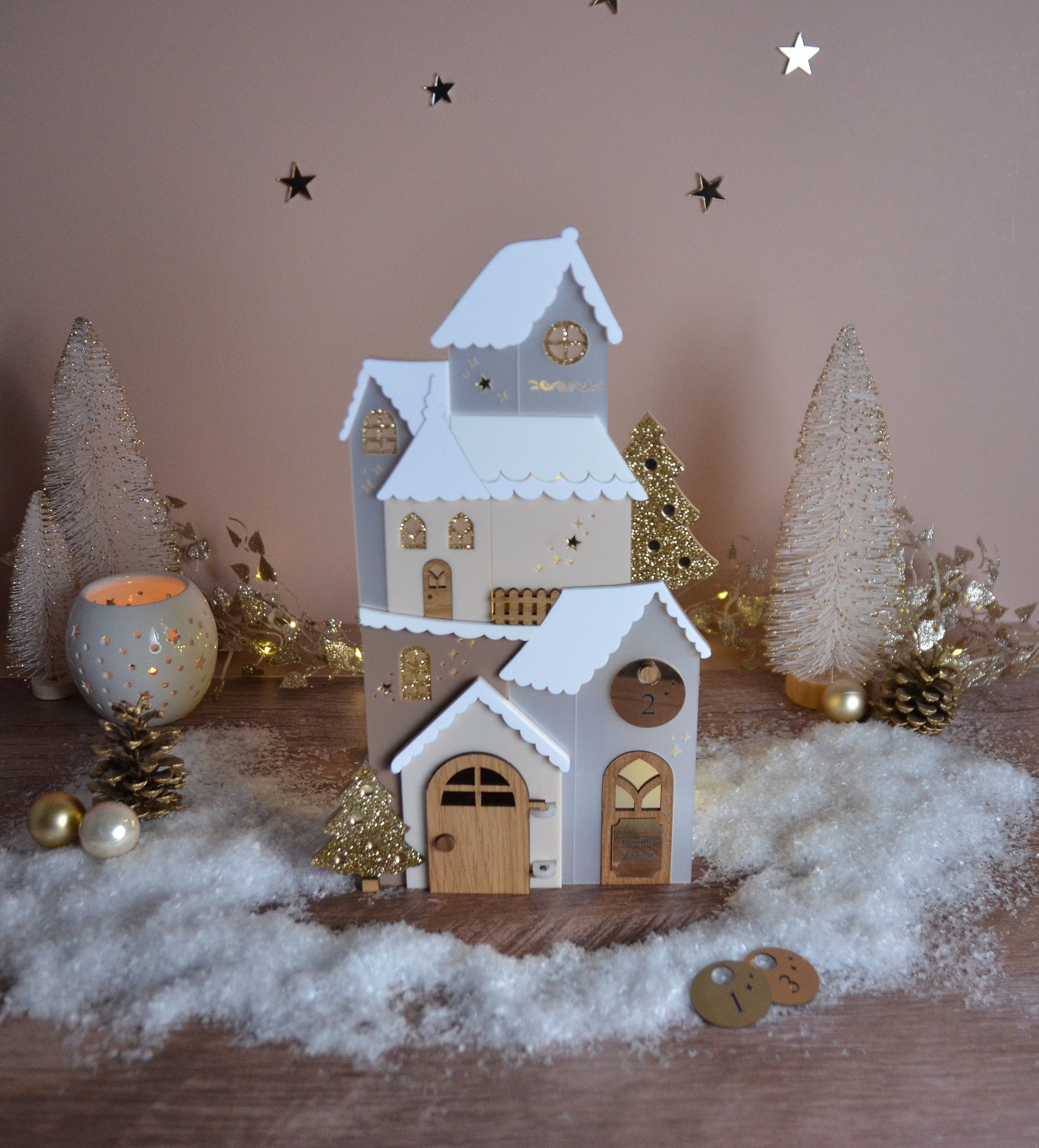 Plongez dans la magie des fêtes avec ce calendrier de l’Avent artisanal, pensé comme un véritable petit village de Noël lumineux.