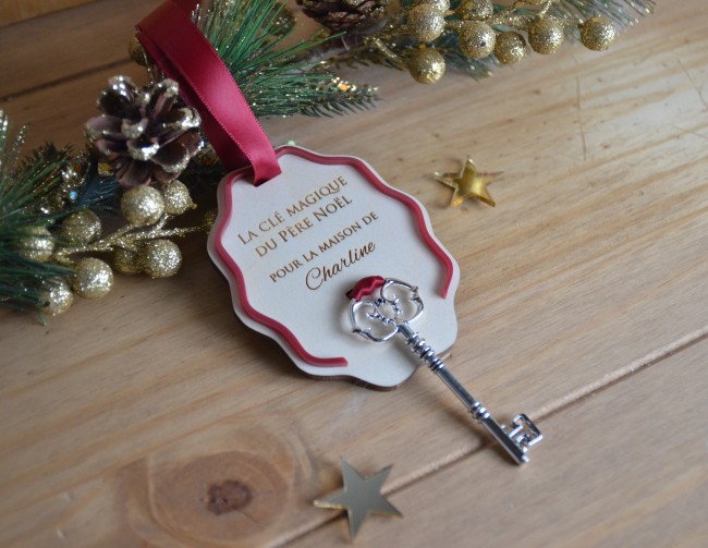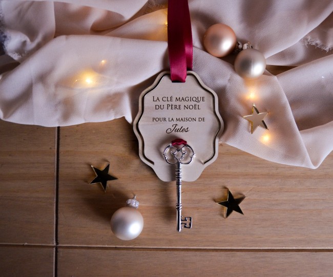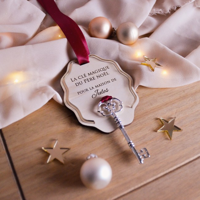 Cette clé magique du Père Noël, suspendue au sapin comme une jolie boule de Noël, ouvre la porte de l’imaginaire et fait briller les yeux des enfants.