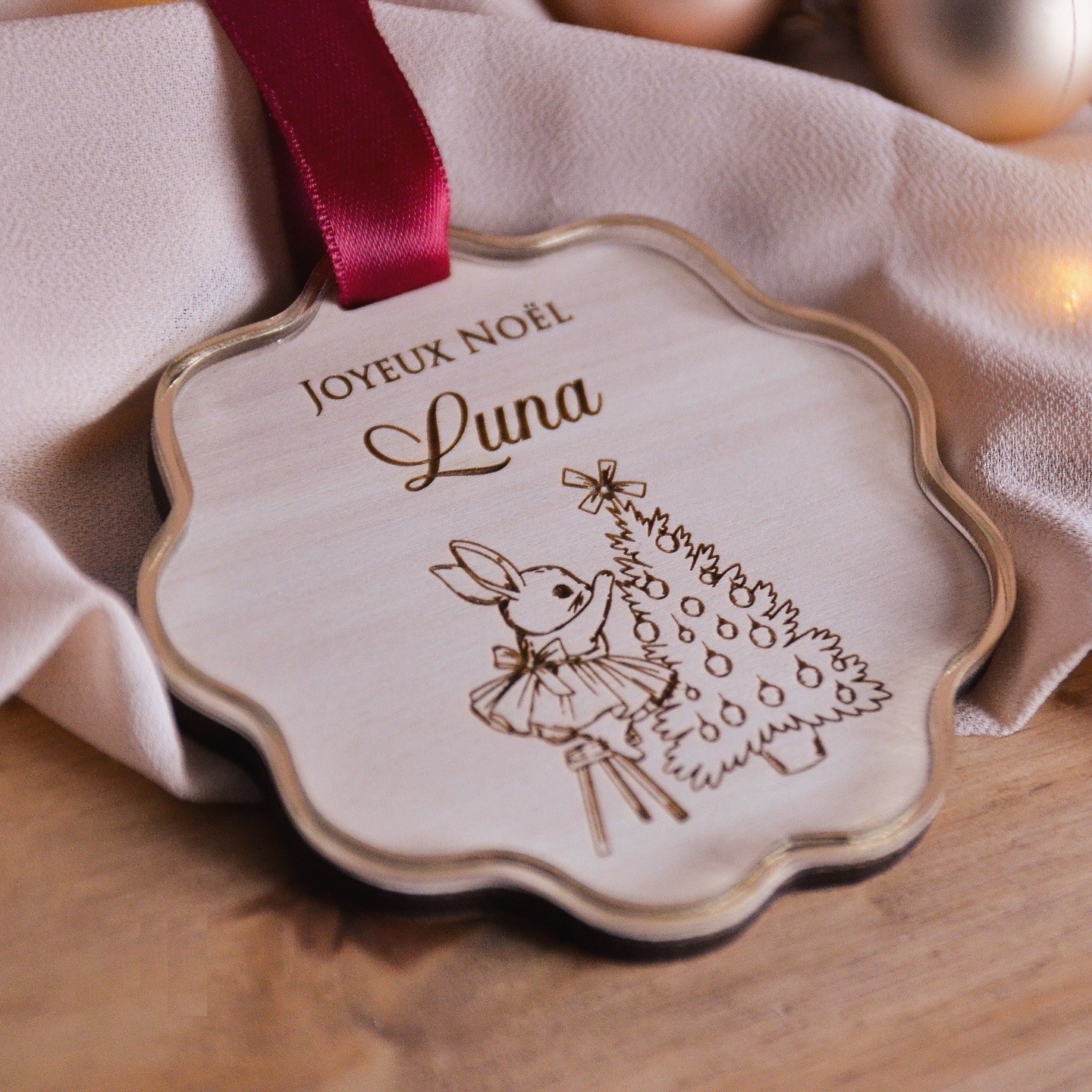 Un ruban satiné vient parfaire l’ensemble — prêt à être suspendu, à briller, et à faire naître des sourires.