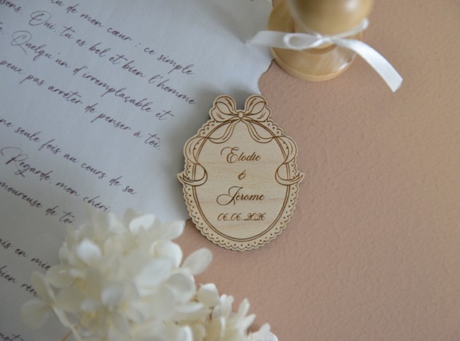 Cadeau invité mariage magnet bois personnalisé – Souvenir mariage romantique inspiration Bridgerton